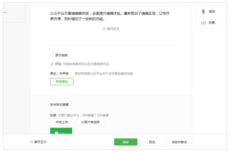 2、優(yōu)化長文章編輯體驗(yàn)。新增收起/展開正文功能,幫你快速地檢查文章相關(guān)設(shè)置。