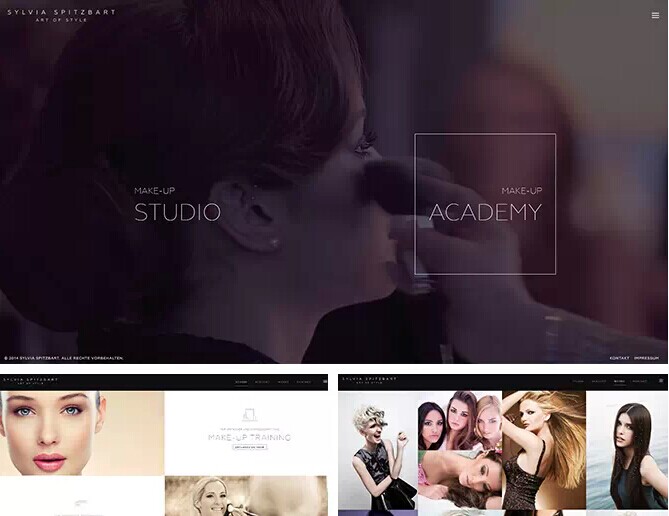 例如:“sylviaspitzbart”化妝工作室,利用纖細(xì)線框,將內(nèi)容很好的分割,頁面簡(jiǎn)潔而大方又不失品質(zhì)。