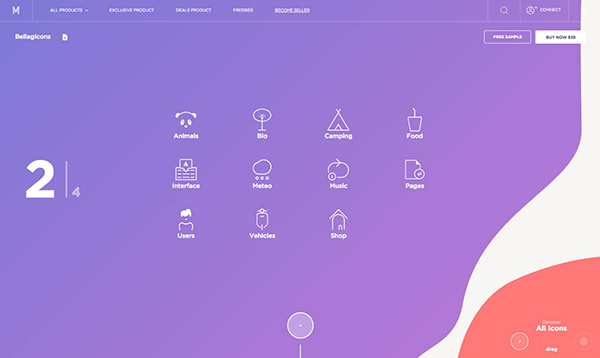 不知道小伙伴們是否已經(jīng)意識到,不同形狀,不同風(fēng)格的圖片,一旦成群結(jié)對的 出現(xiàn)在屏幕上,總能夠給人們帶去不一樣的體驗,所以作為設(shè)計師你可以考慮將圖標(biāo)擺成不同的陣列,如果你想強(qiáng)化視覺,甚至可以將圖標(biāo)放大來使用。另外,最主要的是使用圖標(biāo)集群他不僅會讓你跳出日常圖標(biāo)的使用窠臼,重新思考圖標(biāo)的使用方法;同時你可以基于某個圖標(biāo)包來設(shè)計,也可以根據(jù)需求自定義。